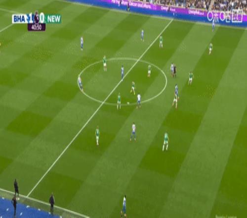 第41分钟,吕特中路送出直塞,维尔贝克从对方两名中卫之间的空档接球后突入禁区,面对出击的波普轻巧挑射破门,布莱顿主场率先破门,维尔贝克打进本赛季的第3粒进球,也是他职业生涯第80个英超进球。