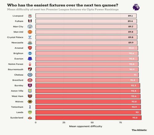 利兹联的三场胜利都是对阵目前排名倒数七名的球队,但他们的潜在数据提供了很多乐观的理由。他们在平均预期进球差(xG difference)中排名第六,这反映了他们持续强劲的表现,即使结果并不总是随之而来。如果他们保持这种水平,他们有很大机会保级成功。