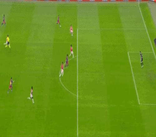 第38分钟,巴尔德吉大范围转移,拉菲尼亚左路突破,小角度劲射直挂左上角,乌奈-西蒙鞭长莫及,4-0!