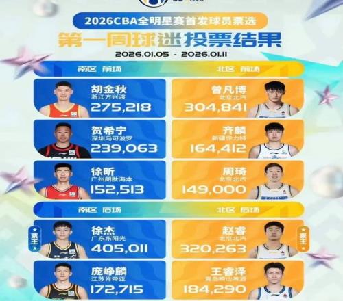 北京时间1月12日,CBA官方正式公布了第一期全明星票选结果,南区和北区票王分别为徐杰和赵睿。值得一提的是,徐杰以405011票碾压其他球员(赵睿320263票)成功当选首期全明星的总票王!不过广东另一位主力后卫胡明轩在首期投票中无缘首发,南区全明星后场另一位首发为一年级新秀庞峥麟。奎因在辽粤大战后遭到辽篮球迷“追着骂”,不仅在现场被辽篮球迷站起来输出国粹,赛后奎因的社交媒体也被包围,有球迷叫嚣让奎因“滚回去乞讨”。而张昊则在完成膝盖手术后顺利出院,不过要回归赛场恐怕需要很长一段时间,这个赛季也基本报销了。