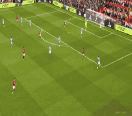 第39分钟,曼城在曼联的30米区域连续传递,罗德里送上妙传,塞梅尼奥的射门稍稍偏出。