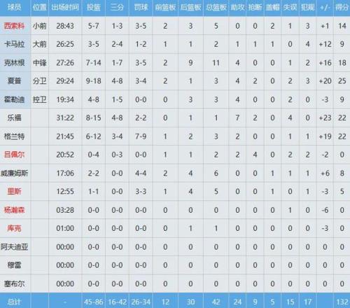 湖人数据如下: