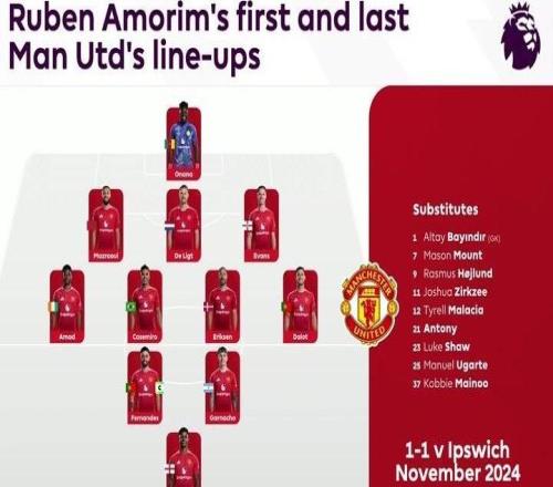 英超官方晒阿莫林执教曼联首秀及末战阵容:你注意到了什么 -